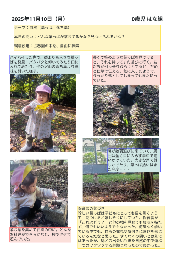 【自然(葉っぱ、落ち葉)】(はな)どんな葉っぱが落ちているかな?見つけられるかな? 2025 11/10 森のようちえん小石川 2025年11月10日2026年2月17日 森のようちえん小石川 2025年度