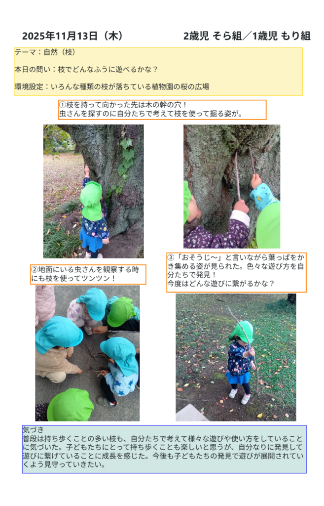 【自然(枝)】(そら/もり)枝でどんなふうに遊べるかな?