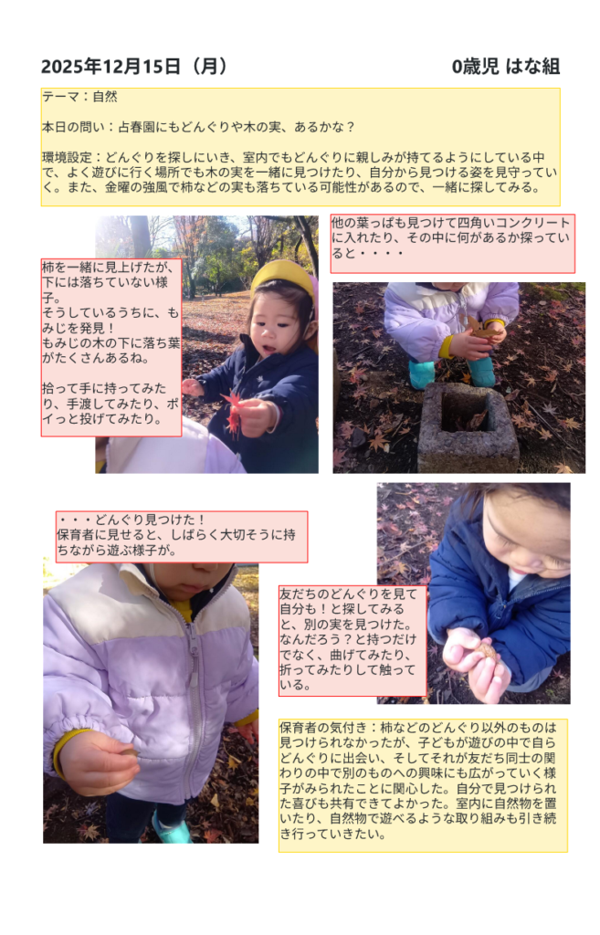 【自然】(はな)占春園にもどんぐりや木の実、あるかな?