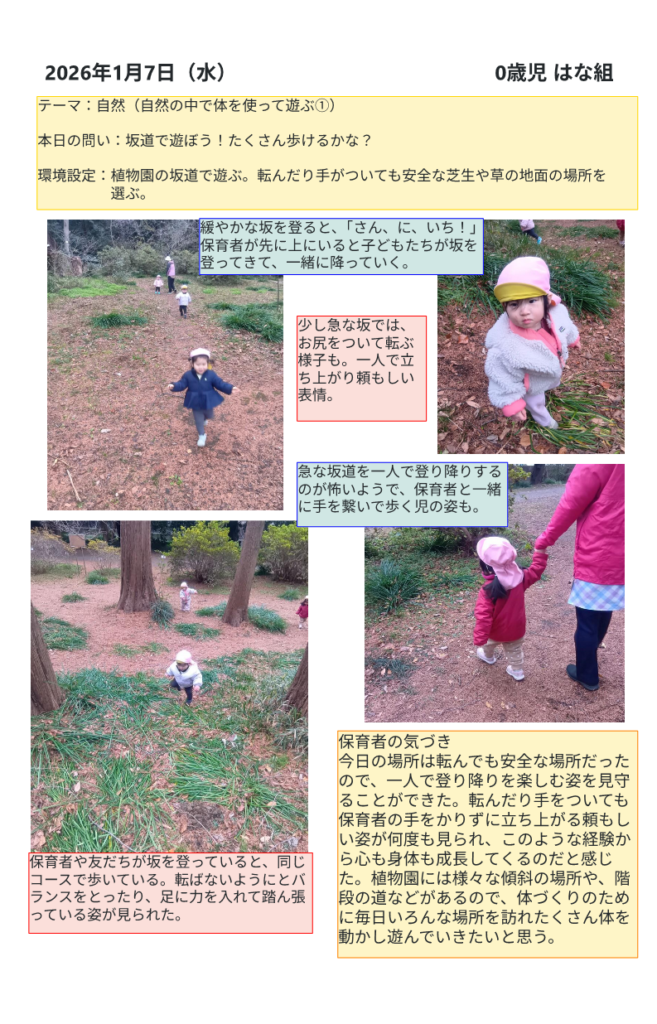 【自然(自然の中で体を使って遊ぶ①)】(はな)坂道で遊ぼう!たくさん歩けるかな?